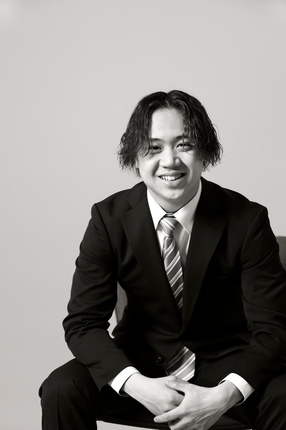 シックな黒白写真と、少しはにかんだ笑顔がベストバランスです。