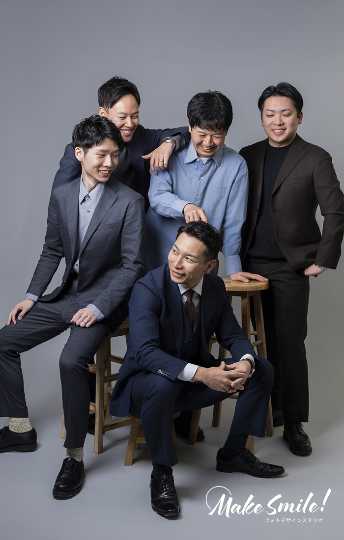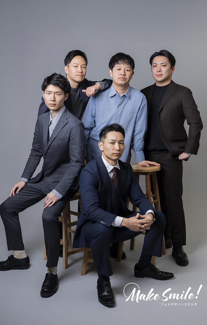 そしてガラッと雰囲気を変えて、クールでかっこいい集合カットも撮りたかったので立ち位置を変えて。