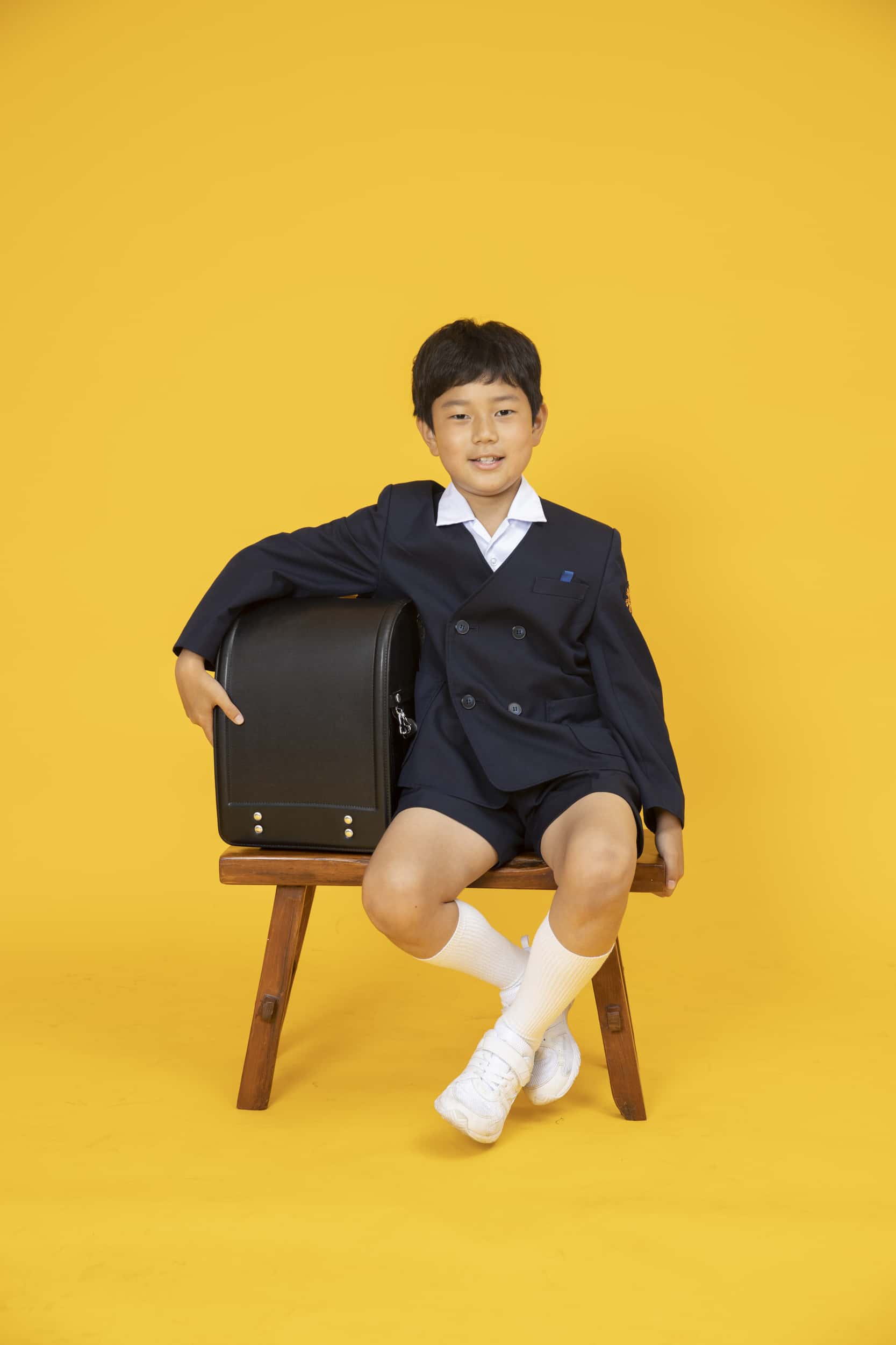 ランドセルを持ってきてくれました。一緒にパシャリ。 黄色い背景がお似合いです(ˊωˋ*)