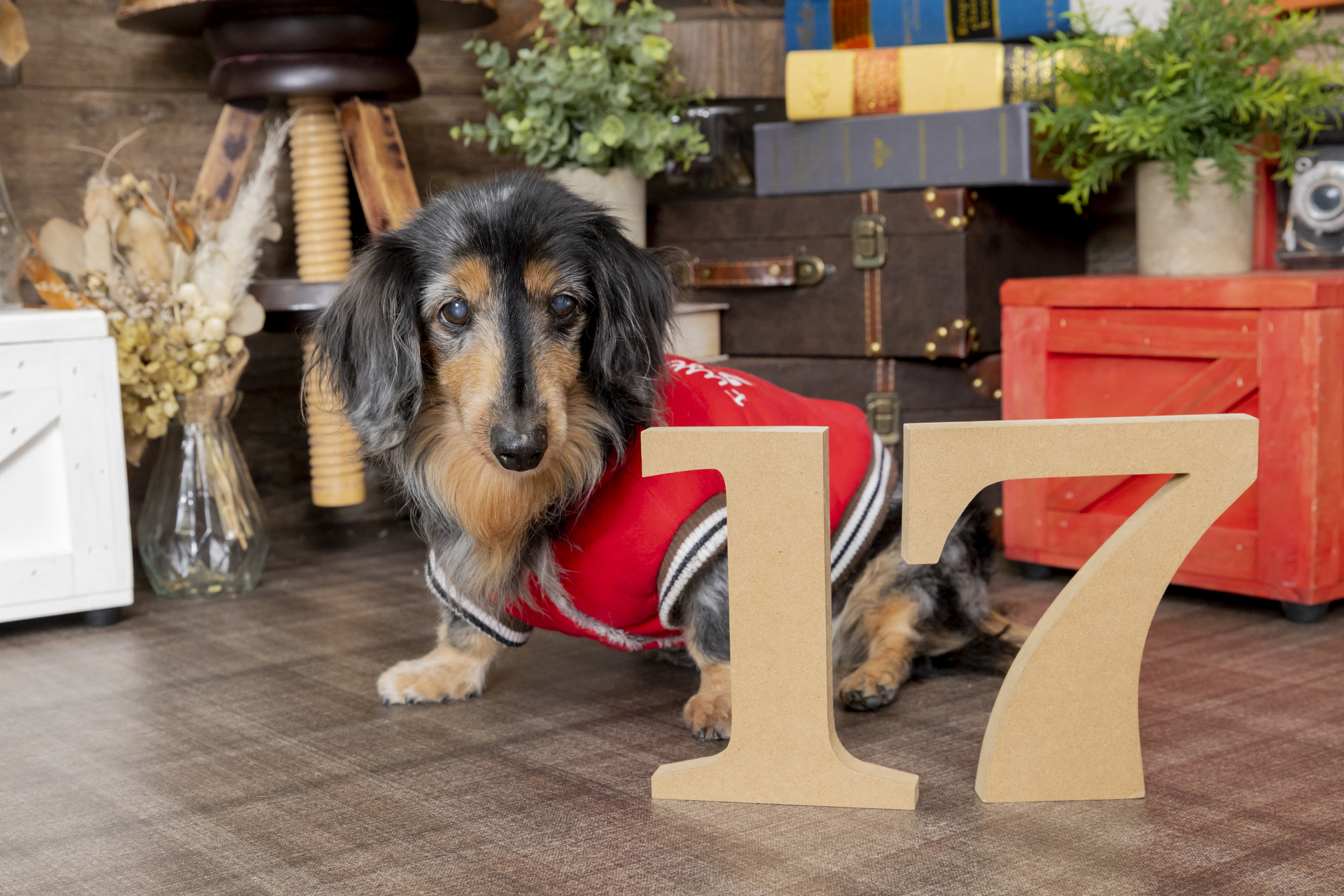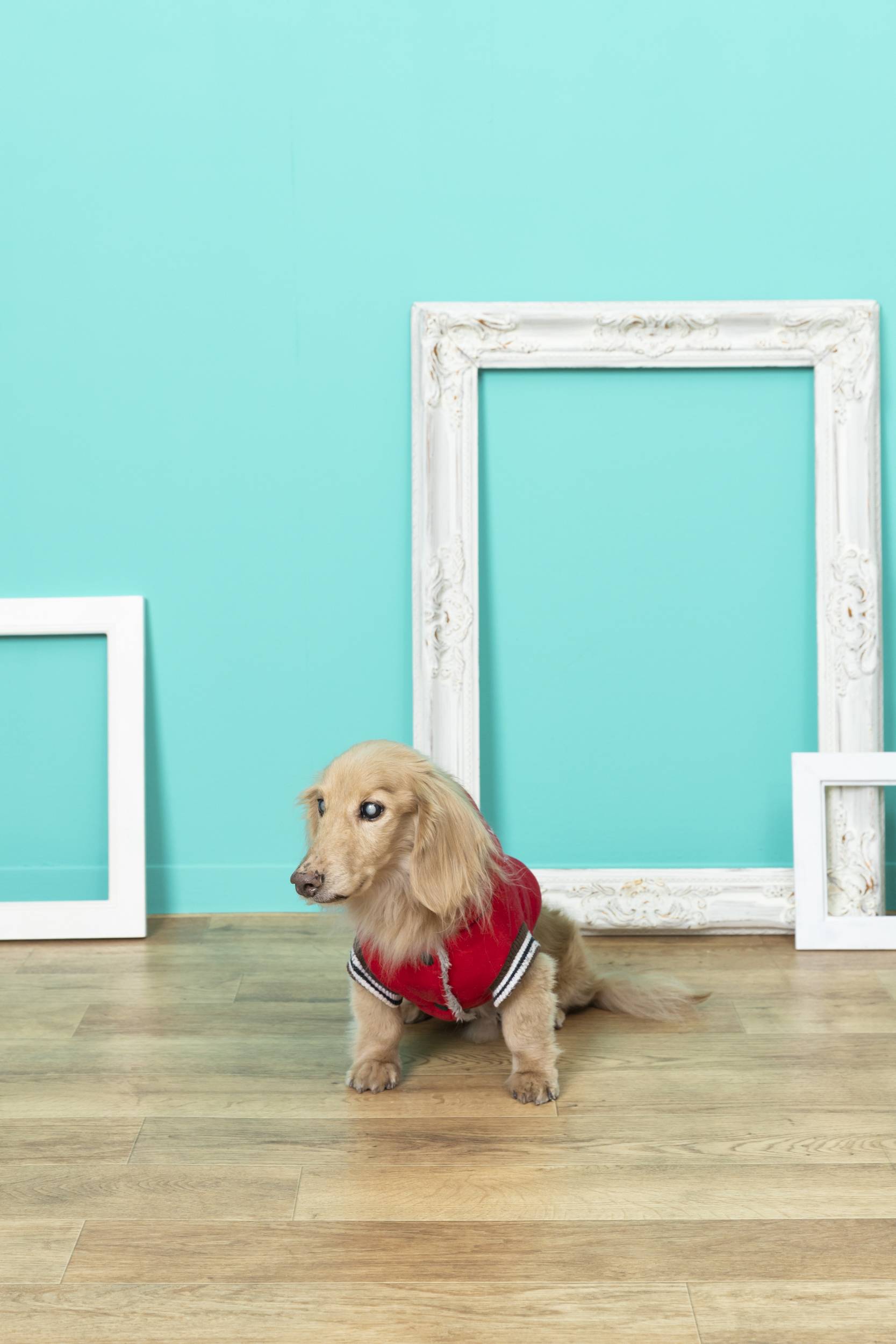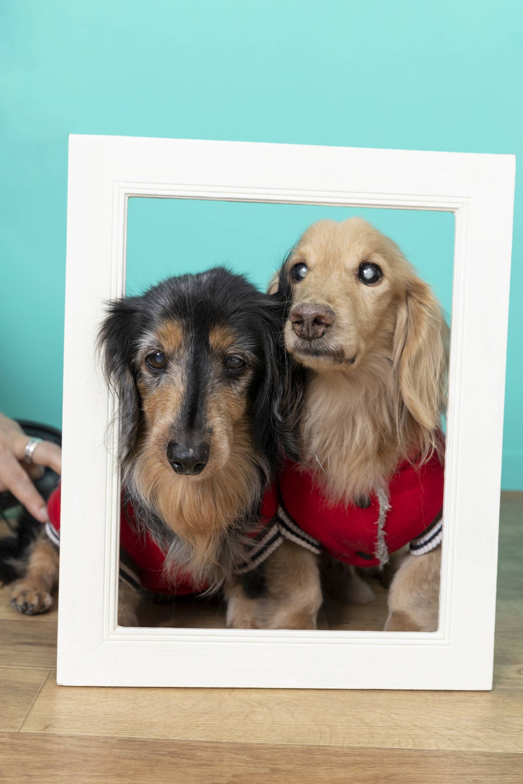 ふたりでママさんとパパさんのご協力で、額縁の中に収まっているワンちゃん。