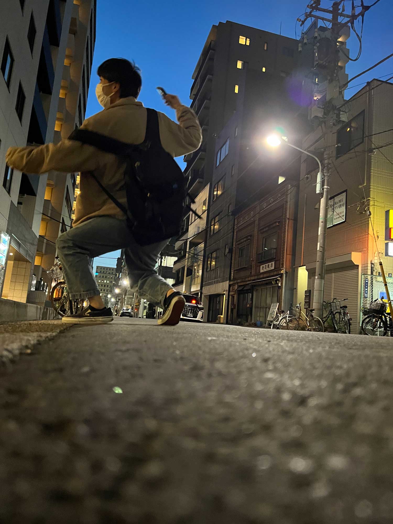 お空がキレイなグラデになっていたので、写真を撮っていたらみむらだくんが写り込んできました。